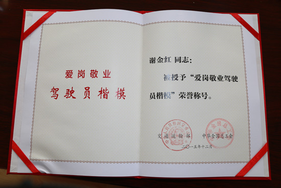 謝金紅,女,42歲,1992年參加工作,2001年從事公交駕駛員崗位。14年里她每天迎來(lái)送往著不同的乘客,重復(fù)著起步、停車(chē)、疏導(dǎo)乘客的工作狀態(tài)。在這個(gè)平凡的崗位上,她始終堅(jiān)守“為乘客服務(wù)是我的職責(zé),讓乘客滿意是我的追求”的諾言,用自己的行動(dòng)踐行著誠(chéng)信服務(wù)的宗旨,為乘客提供了溫馨的出行環(huán)境。 用愛(ài)心溫暖千萬(wàn)乘客 城市公交是服務(wù)群眾的一線窗口,謝金紅在平凡的工作崗位上用自己的一言一行展現(xiàn)服務(wù)之美。上了她的車(chē),溫暖與溫馨的感覺(jué)會(huì)一下子占據(jù)你的心底。 夏天來(lái)了,熾熱的陽(yáng)光射進(jìn)車(chē)廂,曬得乘客睜不開(kāi)眼,她買(mǎi)來(lái)窗簾為乘客遮陽(yáng)庇蔭;雨季來(lái)臨,細(xì)心的她又買(mǎi)來(lái)雨傘,以備乘客不時(shí)之需;暑期到了,精美的扇子掛在每個(gè)座位后面,讓乘客感受清涼;寒冬季節(jié),鋪上隔涼墊,為車(chē)廂扶手穿上親手縫制的把手套,給乘客以溫暖。謝金紅還將愛(ài)心提示語(yǔ)“讓座老幼,稍站何妨”、“你讓座、我讓座、困難時(shí)候會(huì)有座”等愛(ài)心提示語(yǔ)張貼到車(chē)內(nèi)。在她的車(chē)上,你會(huì)看到裝有針線包、急救包、塑料袋、面巾紙等急需物品的便民袋、環(huán)保垃圾筒、天氣預(yù)報(bào)板等,十米車(chē)廂猶如一個(gè)衛(wèi)生舒適的乘客出行的家。由于每天接觸的乘客數(shù)不勝數(shù),為了提供優(yōu)質(zhì)服務(wù),謝金紅認(rèn)真學(xué)習(xí)乘客心理學(xué),對(duì)不同年齡段的乘客采取不同的服務(wù)方法。經(jīng)常坐她車(chē)的乘客都說(shuō):“謝金紅服務(wù)態(tài)度好,說(shuō)話讓人心里感到暖和。遇到老年人,她都會(huì)等老年人上車(chē)扶好再啟動(dòng),還會(huì)提示乘客為我們老年人讓座;遇到青少年乘客,她總是提醒他們車(chē)進(jìn)站時(shí)不要擁擠、打鬧,避免危險(xiǎn);遇到外地乘客,她總是耐心的回答詢問(wèn),坐上她的車(chē)就像到家一樣! 用關(guān)心專遞人間真情 謝金紅的一言一語(yǔ),一心一意,一舉一動(dòng),一點(diǎn)一滴,都如春天般的溫暖,展現(xiàn)著她獨(dú)特的魅力。當(dāng)乘客在十米車(chē)廂遇到了困難,需要幫助的時(shí)候,她都會(huì)伸出援手,讓溫暖與真情遍及十米車(chē)廂。 一次,正值早高峰,車(chē)內(nèi)人多擁擠,謝金紅疏導(dǎo)乘客上車(chē),無(wú)意中看到有位女乘客臉色發(fā)白,滿頭大汗,謝金紅關(guān)心的問(wèn)她怎么了,女乘客回答道:“我暈車(chē),趕緊難受惡心,想要吐。”謝金紅忙從便民袋中拿出紙巾和塑料袋,安慰她說(shuō)不要緊,人吃五谷雜糧都會(huì)生病,吐在袋里,吐出來(lái)會(huì)好受些,女乘客接過(guò)塑料袋忍不住吐了起來(lái),之后謝金紅又遞過(guò)紙巾與水杯,伴著周?chē)澰S的目光和女乘客的連連道謝,謝金紅微笑著說(shuō)“沒(méi)什么”。 公交司機(jī)會(huì)經(jīng)常遇到有乘客丟失東西在車(chē)廂里,推己及人,丟東西的失主一定很著急,所以每當(dāng)謝金紅在車(chē)廂里撿到失物,都會(huì)用最快的方式聯(lián)系到失主。在路線上開(kāi)車(chē)時(shí)間長(zhǎng)了,那些經(jīng)常乘車(chē)偷盜乘客的不法分子的臉也有些熟悉了,只要見(jiàn)到他們乘車(chē),謝金紅就會(huì)大聲提醒乘客。2014年9月的一個(gè)星期天,謝金紅像往常一樣駕車(chē)從園林路從南向北行駛至219公園站時(shí),因?yàn)槭侵苣,乘?chē)的人特別多。突然,幾個(gè)熟悉的面孔映入她的眼睛,她非常緊張,抬頭看了看反光鏡中的乘客們,他們絲毫沒(méi)有警覺(jué),懶散散的站著車(chē)廂里。眼看這幾個(gè)人就要上車(chē)了,她顧不上許多了,回頭向車(chē)廂內(nèi)大聲的說(shuō),請(qǐng)各位乘客注意了,請(qǐng)注意自己隨身攜帶的物品,以免丟失。在她的提醒下,乘客們都明白是怎么回事了。乘客的財(cái)產(chǎn)雖然保住了,但是讓她沒(méi)有想到的是小偷是一個(gè)團(tuán)伙,在她說(shuō)話的時(shí)候,車(chē)上就有他們的人了,因?yàn)樗奶嵝研⊥祩儧](méi)有得手,他們非常生氣,下車(chē)時(shí)對(duì)著她比劃,威脅她讓她少管閑事,她心里雖然怦怦亂跳,但是臉上絲毫沒(méi)有流露出來(lái),也許是她的無(wú)畏和正義,這伙人再也沒(méi)有出現(xiàn)在她的車(chē)上。 用細(xì)心鑄就安全屏障 憑借多年的駕駛經(jīng)驗(yàn),謝金紅在駕駛過(guò)程中總結(jié)出一看、二想、三觀察的駕駛經(jīng)驗(yàn):一看,是出車(chē)前要看傳動(dòng)螺絲是否松動(dòng),各種儀表表盤(pán)、機(jī)件是否完好;二想,是想嚴(yán)格執(zhí)行安全操作規(guī)程,想文明出行、安全禮讓;三觀察,是觀察運(yùn)營(yíng)線路的路面情況,觀察時(shí)間段客流變化情況,觀察不同乘客的乘車(chē)需求。憑借特有的細(xì)心,她練就出“眼尖、耳靈、手快”的駕駛技術(shù)。記得有一次她的車(chē)剛從站點(diǎn)起車(chē),突然有一對(duì)要過(guò)馬路的母女,從車(chē)前右側(cè)沖了出來(lái),憑借著多年的駕駛經(jīng)驗(yàn),她用最快的速度踩下了剎車(chē),全車(chē)乘客一片驚呼,就連站在車(chē)前距車(chē)體僅差分毫的母女倆也被嚇得臉色慘白驚汗直流。她下車(chē)詢問(wèn)母女倆是否安全,在確定她們沒(méi)事后,叮囑她們